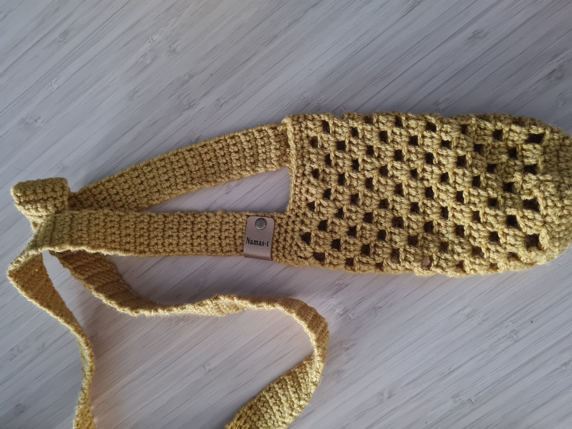 Heb jij er ook altijd last van dat je drinkfles/waterfles/thermosfles of niet in je tas past of bij een grote tas zwerft hij rond en wanneer je een slokje wilt drinken, tas open en graaien naar je fles, slok tas weer dicht pfff wat een gedoe. Met deze handige handgemaakte flessentassen hangt hij om je schouder en kun je er super makkelijk bij. De tas rekt dus alle flesjes passen erin, echt handig! Exclusief fles.
